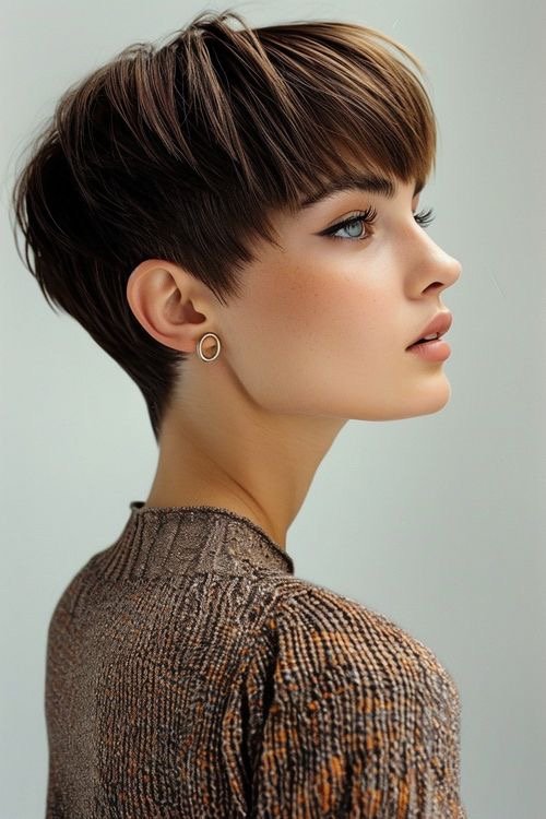 Der erste Look, der „Pixie Cut“, ist wohl der kühnste aller Kurzhaarschnitte. Mit ultrakurzen Längen und klaren Linien, eignet sich dieser Schnitt besonders für Frauen mit feinen Gesichtszügen. Der größte Vorteil des Pixie Cut ist seine Vielseitigkeit: Er kann sowohl elegant gestylt als auch lässig getragen werden. Für die Pflege eines Pixie Cuts benötigt man nur minimalen Einsatz – ein regelmäßiger Schnitt alle vier bis sechs Wochen ist ausreichend, um Form und Struktur zu bewahren.